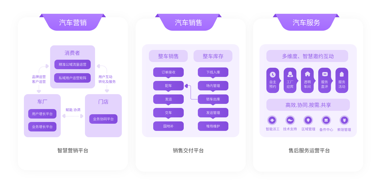 覆盖汽车营、销、服、生态全域业务